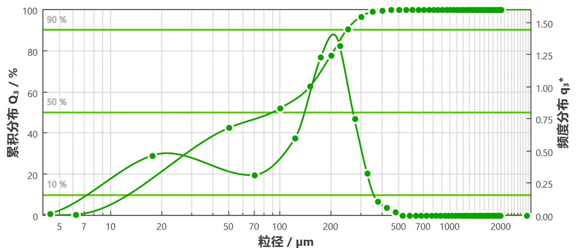 粒度分布が極めて均一。